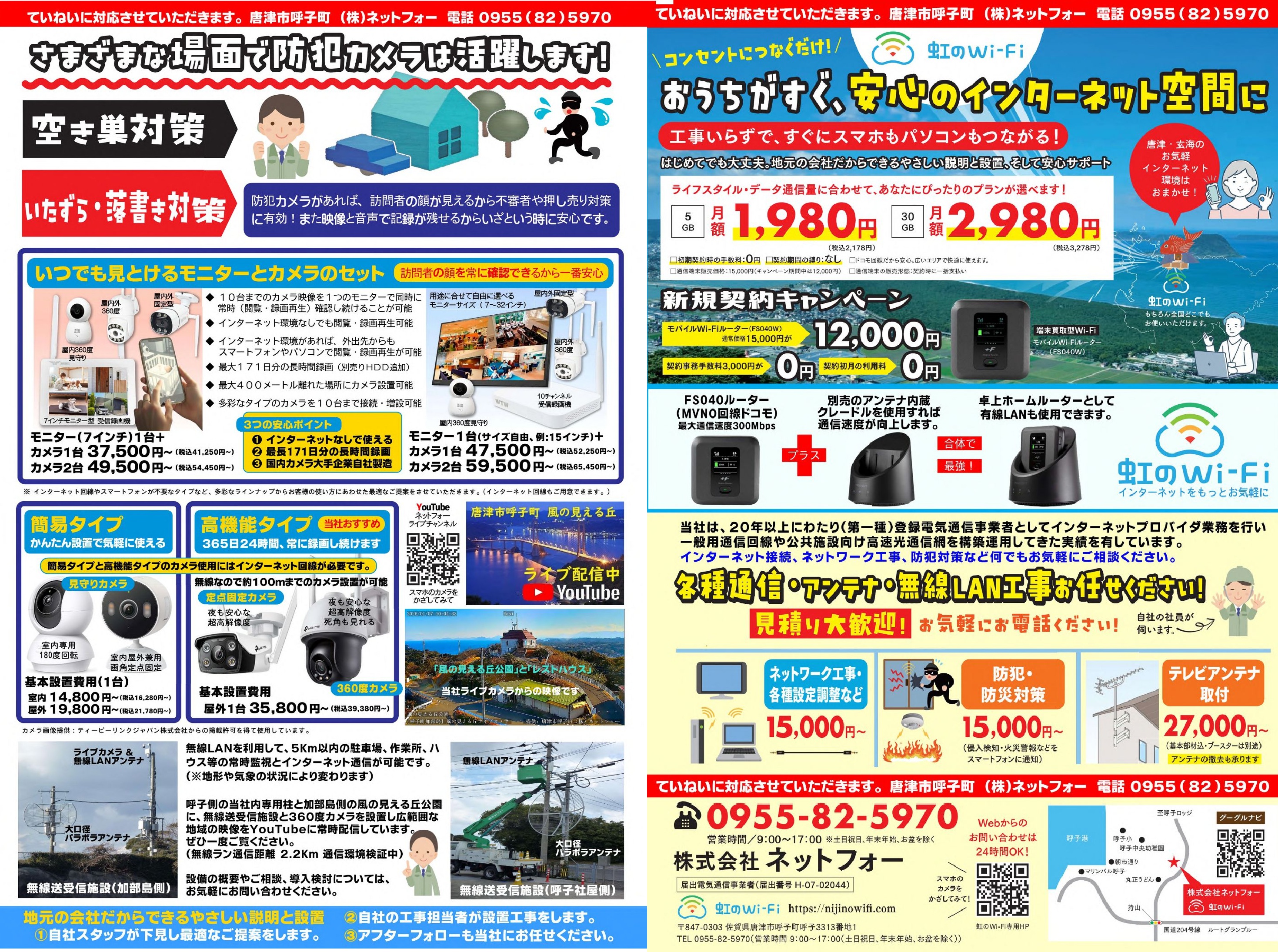 弊社は今後とも地元に根ざした企業として、電気通信事業、防犯カメラシステム設計・設置事業、テレビアンテナ(地上波・衛星波)設置配線